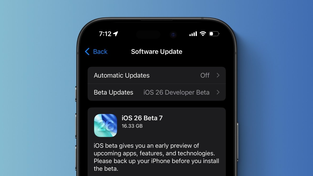 苹果今天向开发人员提供了iOS 26和iPadOS 26的第七个测试版以供测试,这些更新是在苹果发布第六个测试版一周后发布的,该更新将内部版本号从之前的 23A5318f 提升至 23A5326a。注册开发人员可以使用“设置”应用程序的“软件更新”部分下载新的测试版软件。