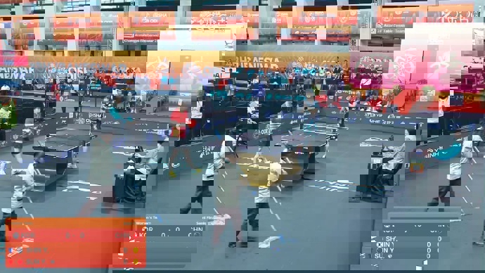 首先是湿热天气带来的烦恼。10月中旬,当地气温仍在30摄氏度徘徊,湿度达70%左右。场馆内空调严重不足,许多队员不得不在训练和比赛后头顶冰袋降温,“国乒全员油头”成为热搜。比赛暂停或是局间,桥本帆乃香化身为“铁扇公主”为日本队队友们扇风。湿热的气候还使得球拍胶皮打滑,在对阵韩国的半决赛中,王曼昱拿着干毛巾不断擦拭自己的胶皮。